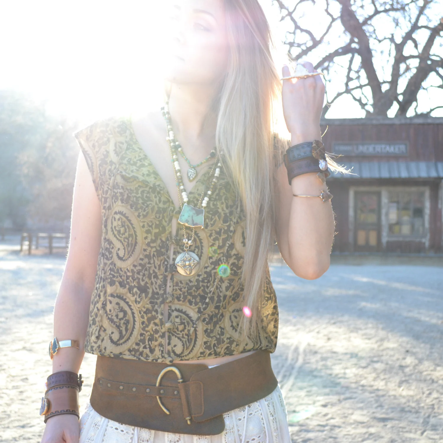 Our Pandora tops are made from 100% Batik Print Cotton available in a few colors and prints. They are dainty cover button tops that are a great addition to any bohemian wardrobe.