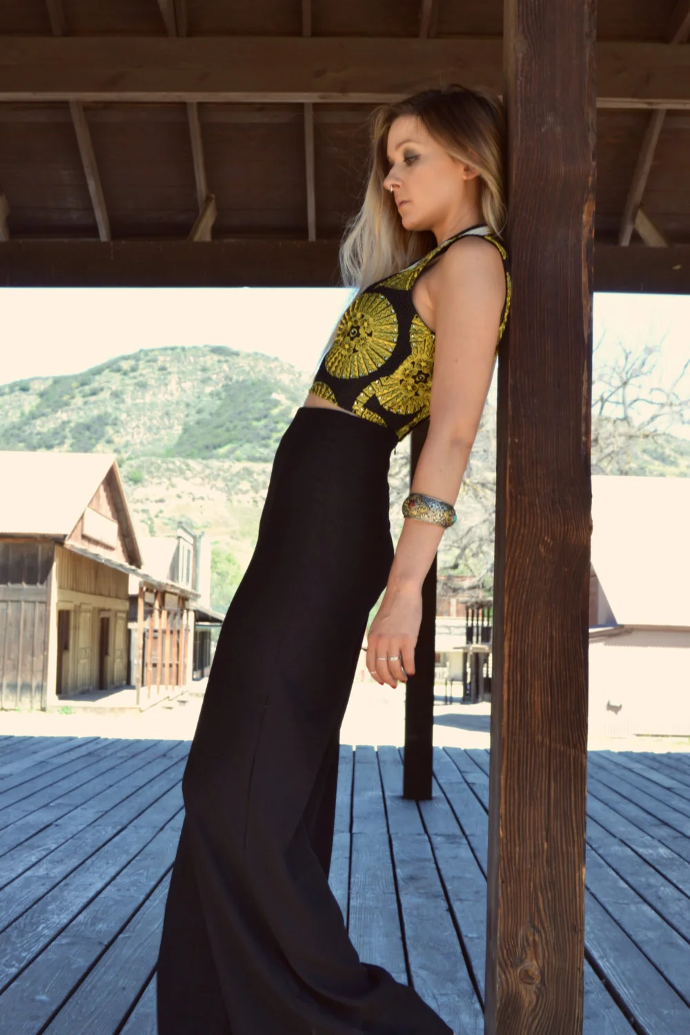 The Electra Crop Top is so funky and the perfect Summer statement garment. Pair this easy to wear top with a flowy long skirt or high waisted pants for a casual, comfortable look. They are made from high quality African Lace that is so luxurious with the embroidery detailing. Handmade in Los Angeles, Ca from start to finish in an small ethical factory.