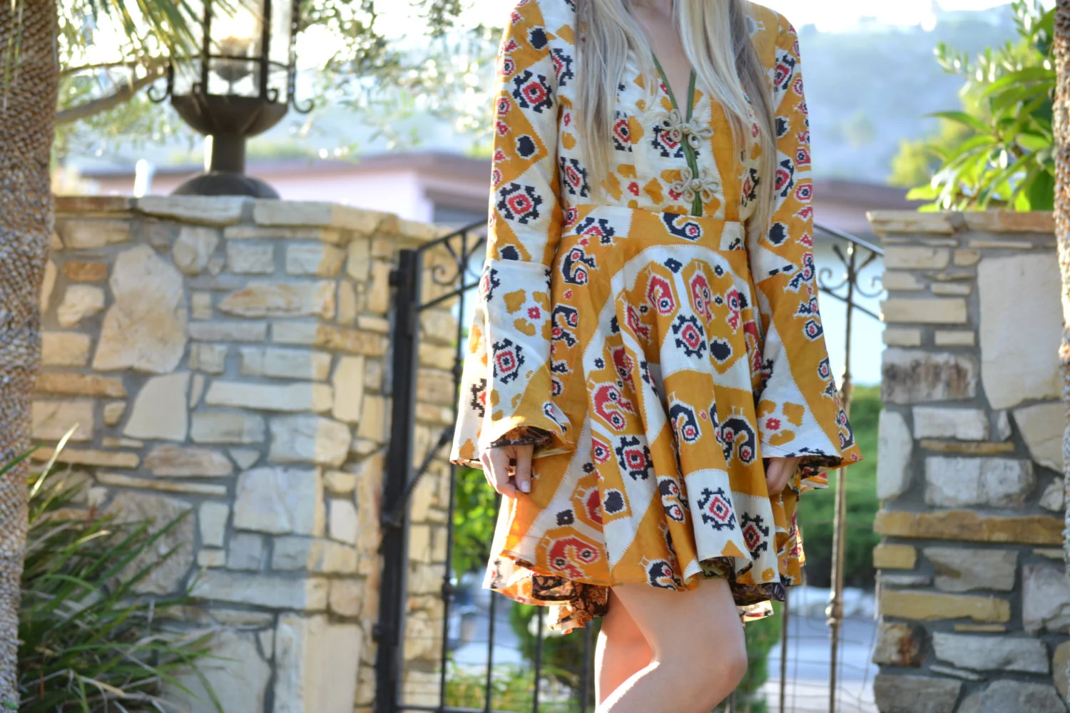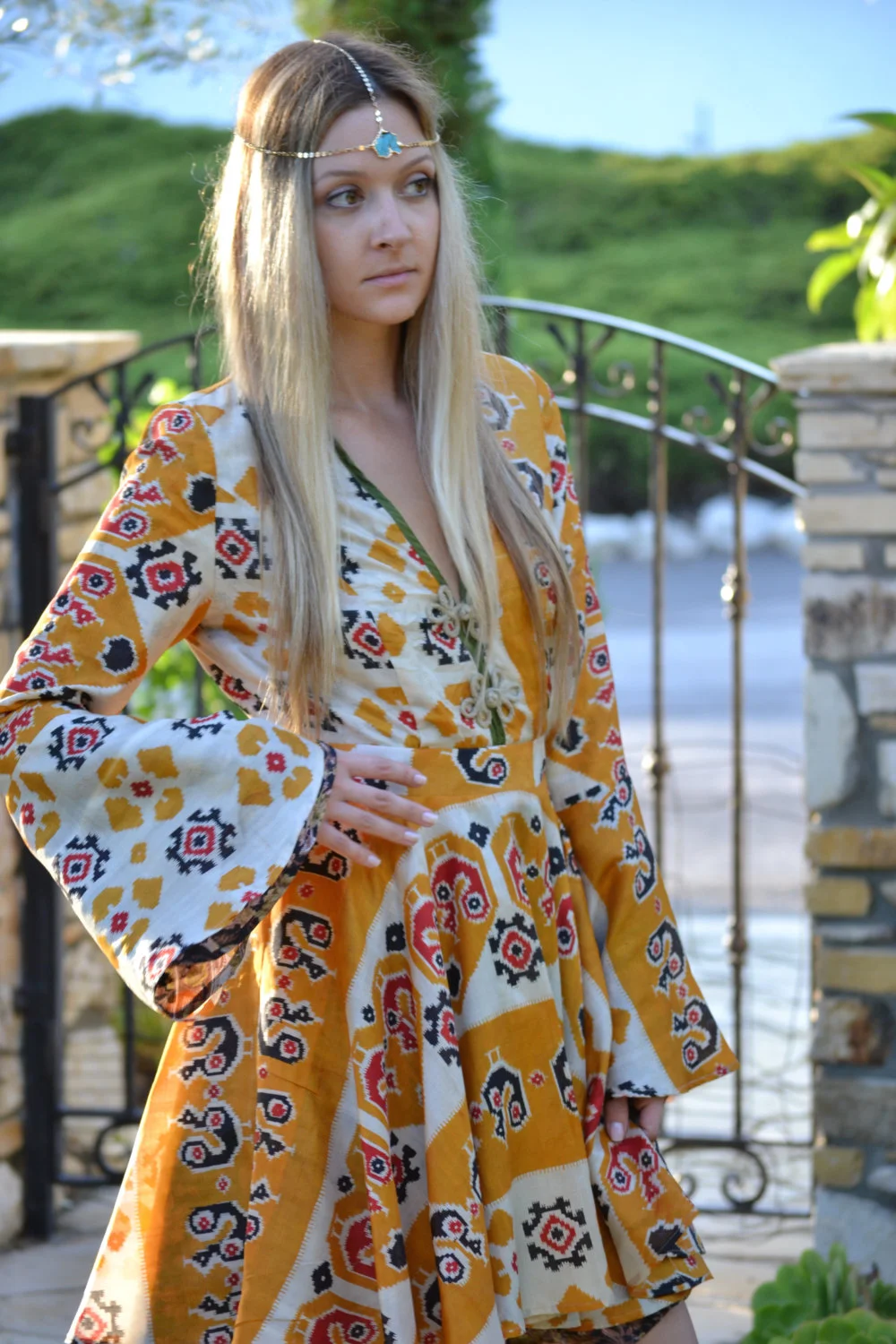 CALYPSO DRESS /// VINTAGE SILK BELL SLEEVE DRESS /// MEDIUM