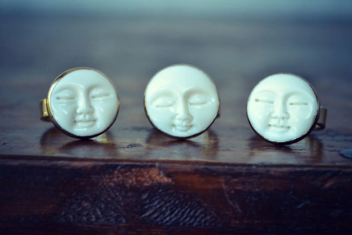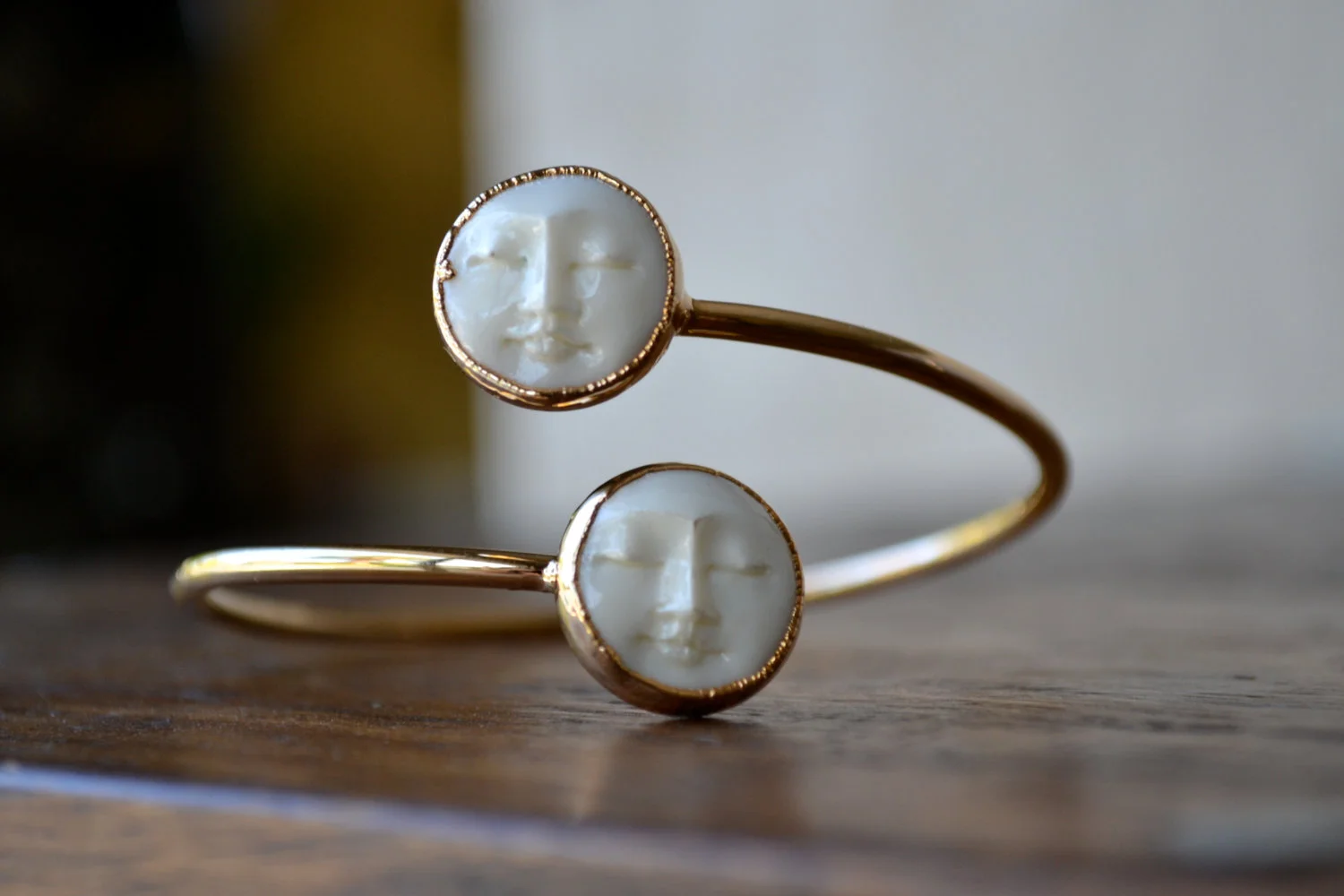 ➤ Listing is for a bracelet similar to the ones pictured. Each moon face is hand-carved, and therefore unique. No two bracelets are alike.