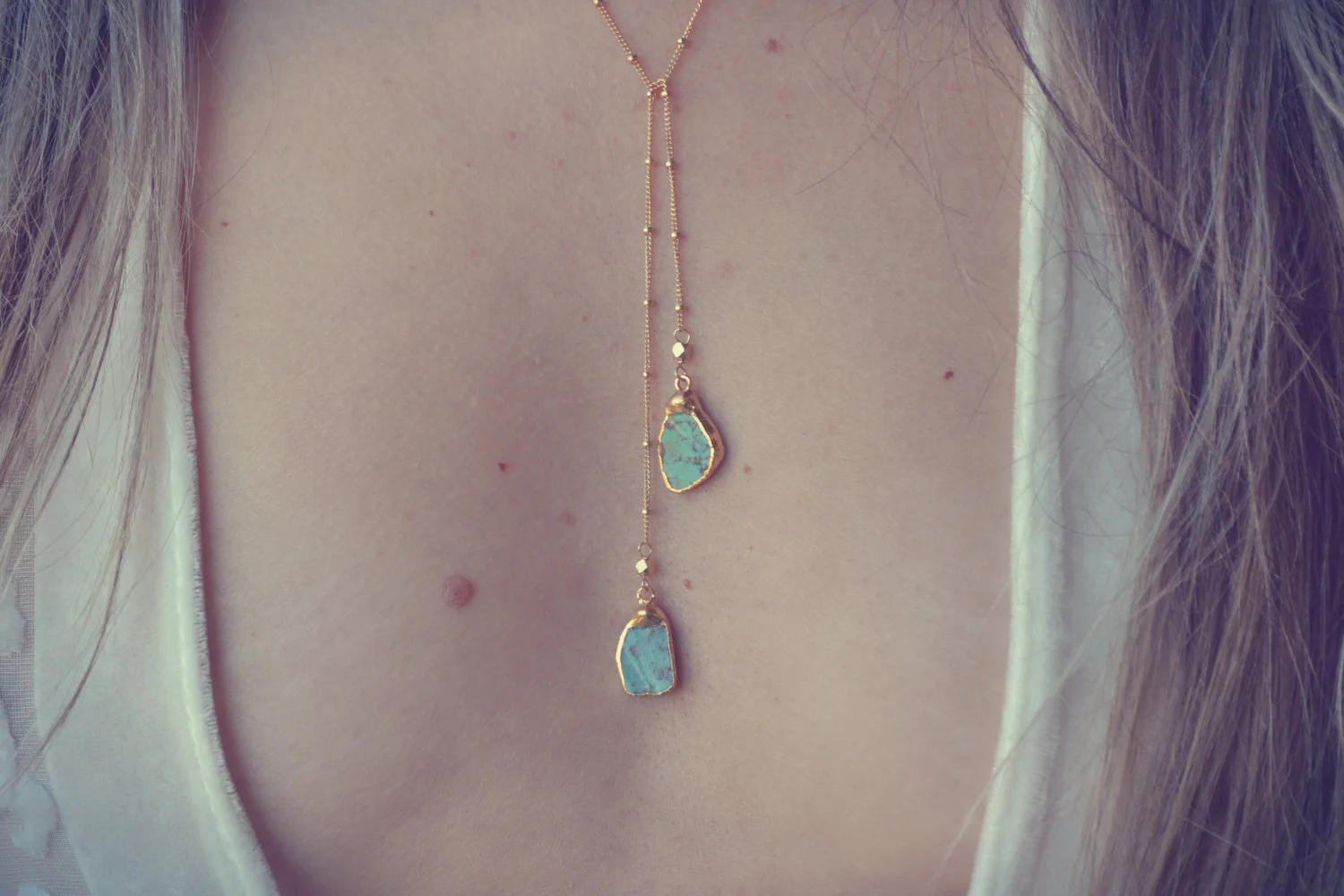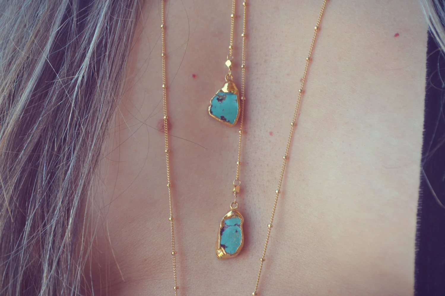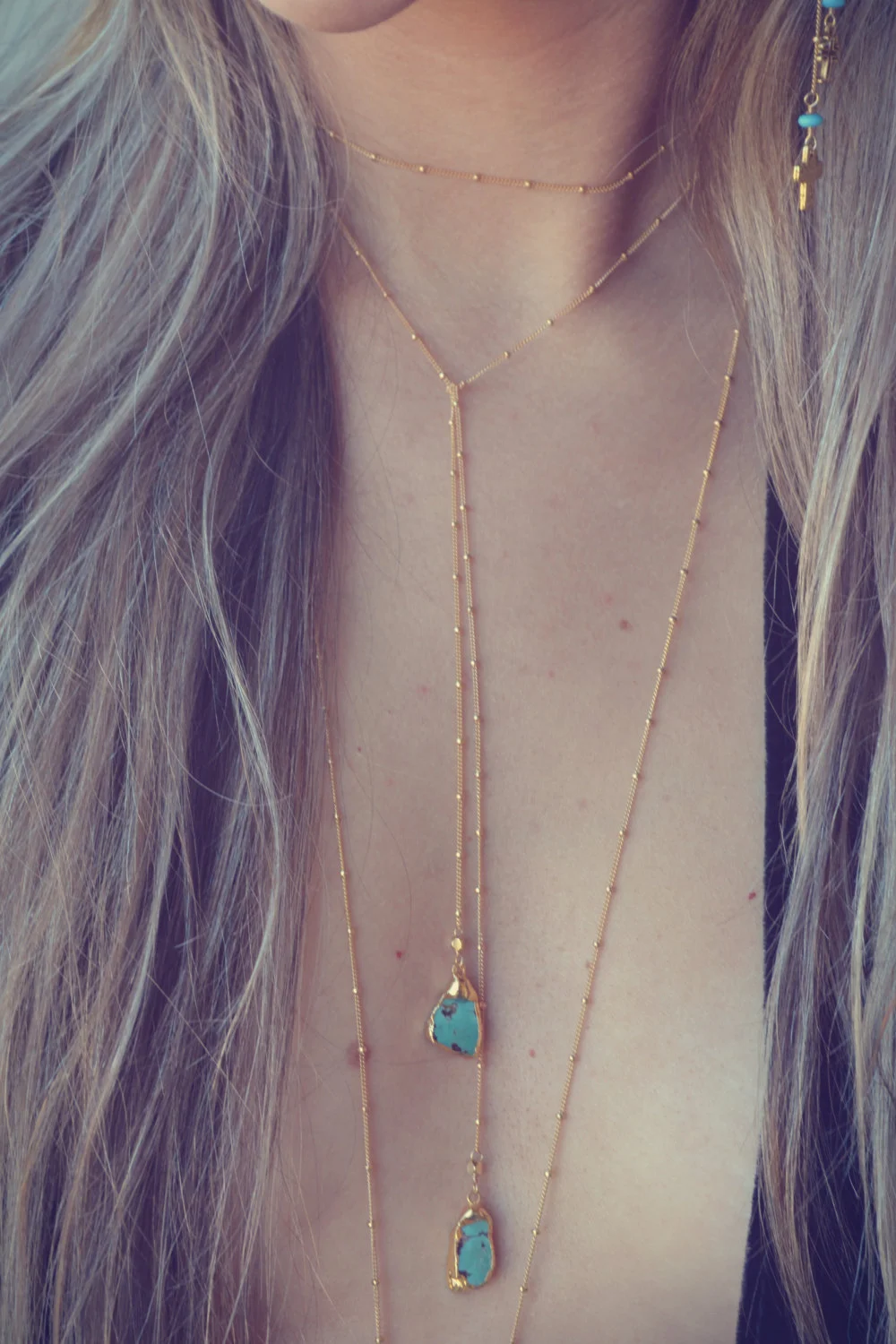 ~24Kt Gold electroformed double Turquoise Chunk pendant lariat